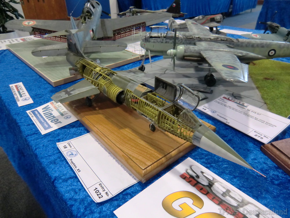 Nach dem alternativen Dinner in der Overseas Section am Samstagmittag, das immer wieder ein Anziehungspunkt zum Quatschen, Essen und Trinken ist, ging es zum Schietzen in den Wettbewerb. Dieses Jahr gewann ein „leergeräumter“ Starfighter in 1/32 den IPMS Deutschland Pokal für das bestgebaute Flugzeugmodell, dessen Original mit deutscher Kennung oder aus deutscher Herstellung nach 1945 flog.