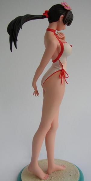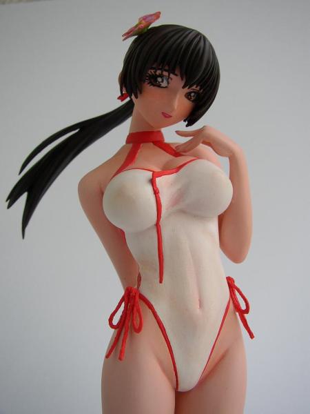 Dieser Resinbausatz der Kasumi im Maßstab 1/6 besteht aus 12 Teilen von hoher Passgenauigkeit. Der Zusammenbau erfolgte in der üblichen Weise mit Metallstiften und Epoxid Harz Kleber. Nach der Grundierung mit dem Citadelprimer airbrushte ich die ganze Figur mit Hautfarbe. Um besser die Details bemalen zu können, setzte ich den Kopf erst am Ende zusammen. Der Pony verdeckt nämlich teilweise die Augen, so das man mit dem Pinsel nicht heran kommt! Also bemalte ich die Teile separat und klebte sie hinterher zusammen! Genauso verfuhr ich mit den Schleifen des Badeanzuges...