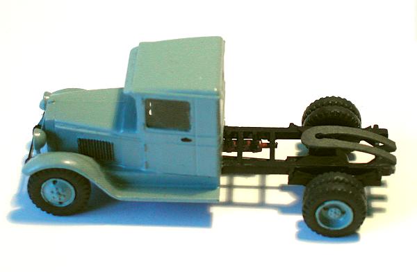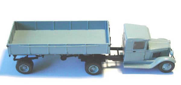 Ich habe versucht, mit den beiden Modellen die entscheidenden Unterschiede der Gespanne ZIS 10 mit dem Auflieger PP-1012 sichtbar zu machen. Die Zugmaschinen entstanden aus den Bausätzen vom ZIS 5 der schon genannten Hersteller. Entsprechend den Unterlagen wurden die Rahmen gekürzt und der Sattel aufgebaut. Die Nachläufer entstanden im Eigenbau nach einem Riss aus der ukrainischen Veröffentlichung zu den ZIS - LKW sowie Fotos aus dem polnischen Heft zum Thema. Das Bastelmaterial lieferte die Restekiste und das Materiallager in Form von Platten und Profilen aus Polystyrol.