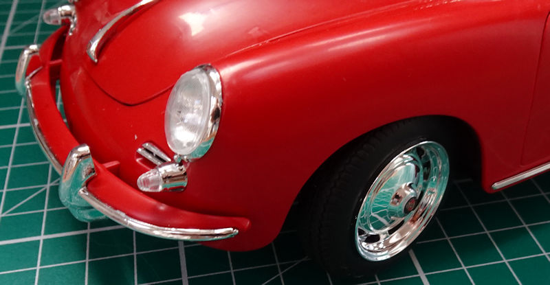 Also weiter geguckt…eine spannende Quelle www.Porsche.com: So so "optisch unterschied sich die B-Serie vom Vorgängermodell u. a. durch den um ca. zehn Zentimeter höher positionierten vorderen Stoßfänger mit vergrößerten Felgenhörnern sowie durch die ebenfalls deutlich höher gesetzten Scheinwerfer" Oh ja das habe ich gemerkt beim Bauen. " Die Hupengitter neben den weiter herausragenden vorderen Blinkern waren flacher und hatten zwei verchromte Lamellen. Zudem wurde der Fronthaubengriff nach unten hin breiter. Die beiden Lampen der Nummernschildbeleuchtung wurden in die höher gesetzte hintere Stoßstange integriert, der Rückfahrscheinwerfer unterhalb der Stoßstange montiert." Oh und es gab eine Modellerweiterung im Jahr 1962." Zum Modelljahr 1962 (T6) erhielt der 356 B eine nach unten hin deutlich verbreiterte Fronthaube sowie einen Tankdeckel im vorderen rechten Kotflügel. In die vergrößerte Motorhaube wurden zwei senkrechte Luftgitter integriert."