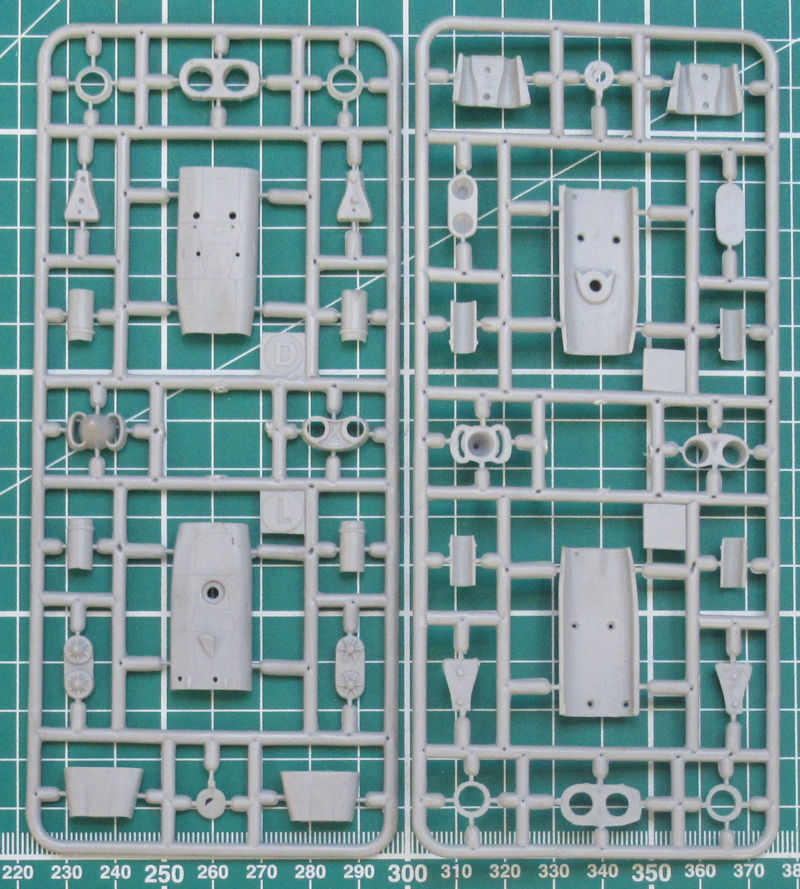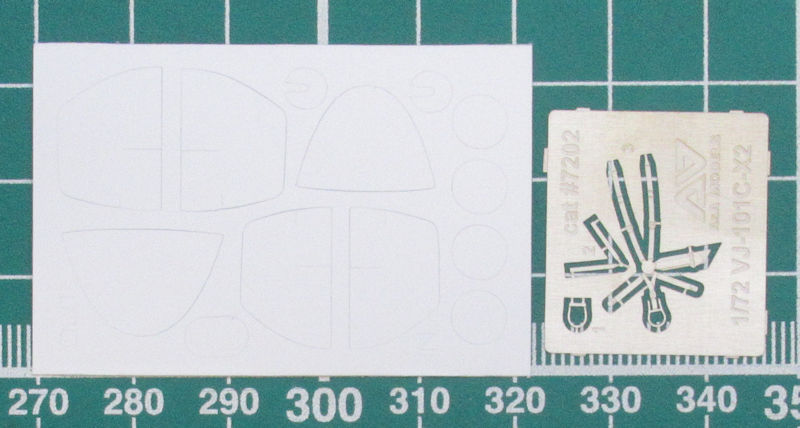 Das Fahrwerk ist recht filigran. Die beiden Hauptfahrwerksräder entstehen aus zwei Hälften. Das Bugrad ist an das Fahrwerksbein anmodelliert und damit wird es stabiler. Die Klappe über den im Rumpf befindlichen Triebwerken kann alternativ geöffnet bleiben. Als Bonus gibt es noch eine Einstiegsleiter. Die Kanzel ist auch zweiteilig vorhanden. Mittels der vorhandenen Vinylmasken lässt sich die 101 leichter lackieren.
