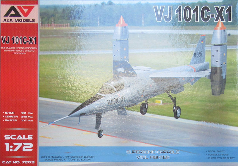 Vorbild: Die VJ 101 war ein sechsstrahliges, senkrechtstartendes sowie überschallschnelles Versuchsflugzeug. Es entstand beim Entwicklungsring Süd. Das war ein Gemeinschaftsunternehmen von Ernst Heinkel Flugzeugbau GmbH, der Messerschitt AG und der Bölkow GmbH. So stand die Bezeichnung VJ für Versuchsjäger. Gedacht war die 101 als Ausgangspunkt für einen senkrechtstartenden Nachfolger der Lockheed F-104G Starfighter.