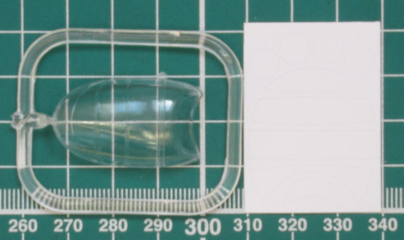 Die Cockpithaube besteht aus einem Teil und kann daher nicht offen angebaut werden. Wer das möchte, der muss sich eine selbst ziehen. Dafür gibt es als Lackierhilfe ein paar einfache Masken.