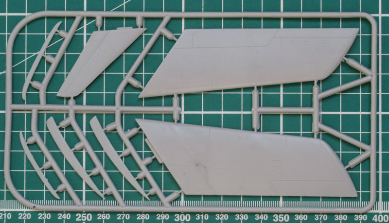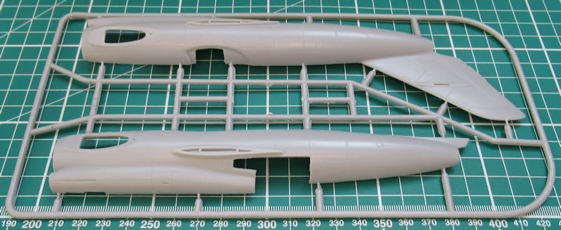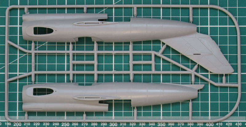 Der Zusammenbau des Lufteinlaufs ist bei dieser späten Version recht einfach. Durch die drei kleinen Lufteinläufe sieht man das erste WK-1-Triebwerk nicht. Auf jeden Fall sollte man ein Gegengewicht in der Radarverkleidung einbauen. Fast alle Ruder haben scharfe Hinterkanten. Leider ist es bei den Querrudern nicht der Fall. Beim Fahrwerk hat man sich bei A&A models Mühe gegeben. Dieses ist recht gut gelungen.