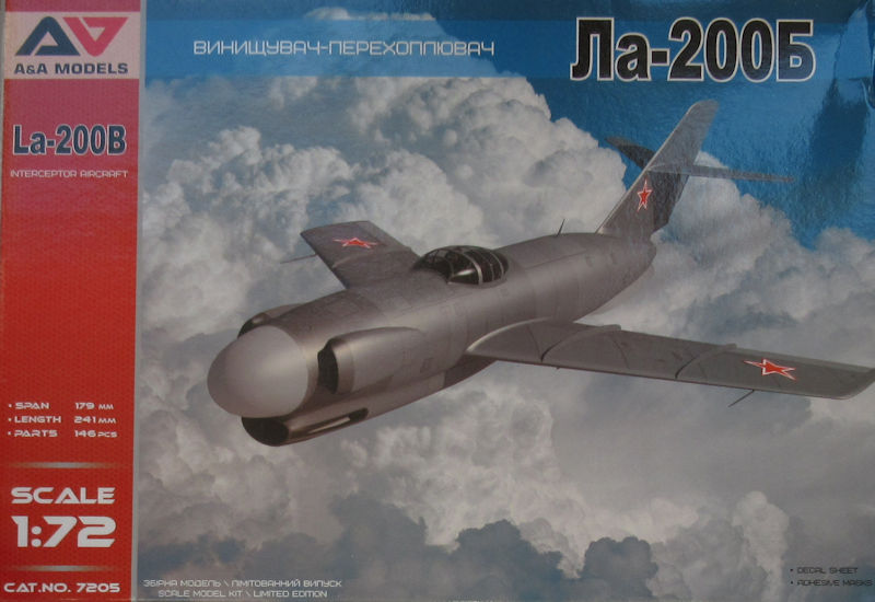 Vorbild: Die La-200 bzw. Flugzeug 200 entstand ab 1948 als Nacht- und Allwetterjäger. Es gab drei verschiedene Varianten. Alle wurden mittels zwei WK-1-Strahlturbinen angetrieben. Sie unterschieden sich im Bereich des Lufteinlaufs und natürlich beim eingebauten Radarsystem. Eingebaut waren drei 37mm-Kanonen.