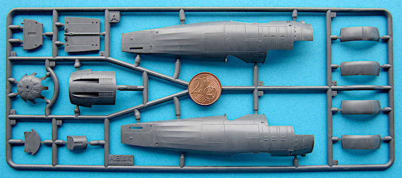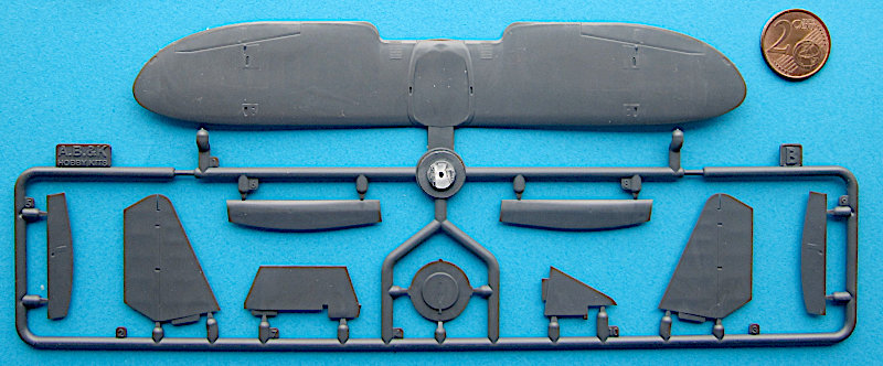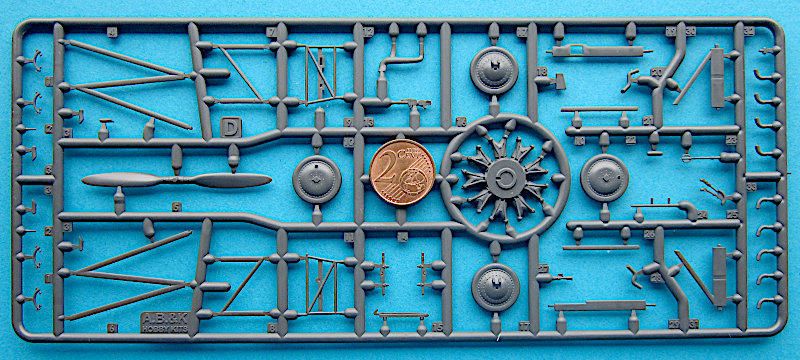 Wie schon bei der A2N3 ist der Gesamteindruck der Spritzlinge etwa wie bei WingsyKits. Auch hier gibt es etwas Grat an der Cockpitöffnung der beiden Rumpfhälften. Sehr gut gefällt mir die Darstellung der Stoffbespannung. Diese ist zurückhaltend aber wahrscheinlich trotzdem etwas stärker als dies beim Original der Fall war. Die Löcher im Windleitblech hinter dem Propeller sind geschlossen dargestellt. Ich vermute das funktioniert so ähnlich wie bei der I-16 / I-153. Ich habe jedenfalls Fotos von beiden Konfigurationen gefunden, obschon man sagen muss, dass es nicht sehr viel Vorbildmaterial gibt.