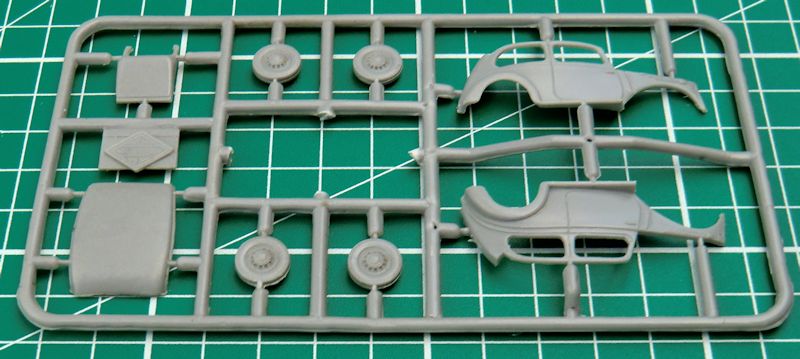 Bausatz: Nachdem ACE aus der Ukraine schon einige andere Pkw's in 1/72 herausgebracht hatte, folgte nun ein Austin 8HP Fortlite. Im praktischen Stülpkarton befinden sich gut verbracht drei im Short-Run-Verfahren hergestellte hellgraue Spritzlinge mit 37 Bauteilen, ein Decalbogen und die Bauanleitung.