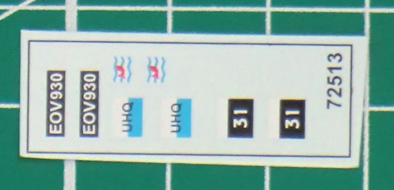 Der winzige Decalbogen ist tadellos gedruckt. Die Farbangaben sind nur für Außen vorhanden.