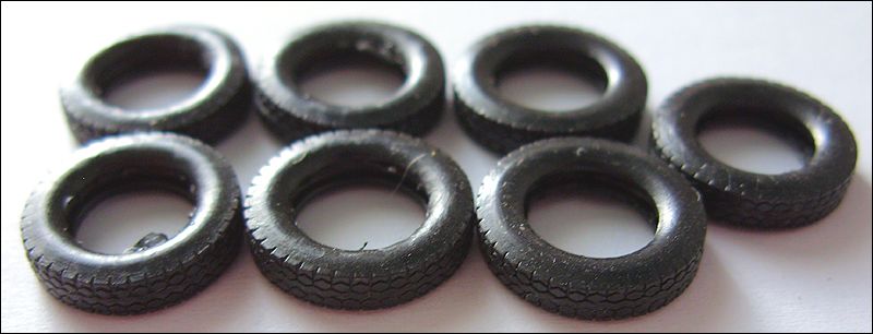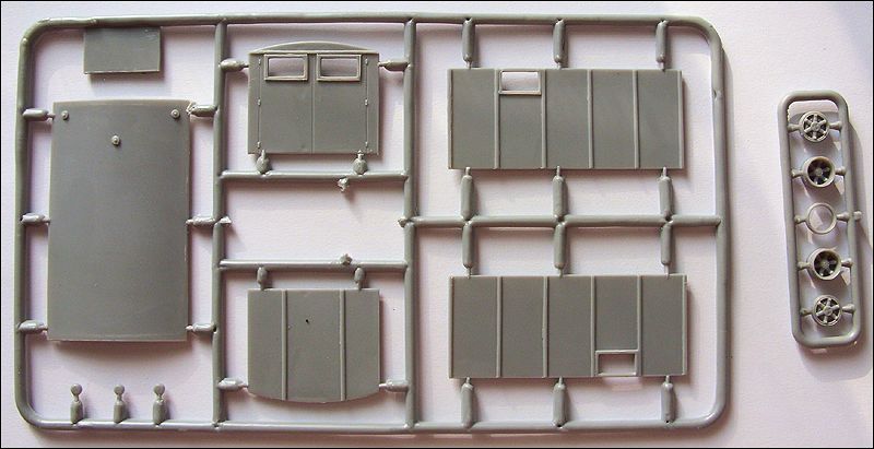 Bausatz: Er enthält fünf graue Spritzlinge, drei davon sind identisch mit denen aus dem AHR und dem AHN, die dort von Volker gemachten Aussagen gelten also auch hier. Sieben Gummireifen werden ebenfalls mitgeliefert, die Verarbeitung bedarf aufgrund der Weichmacherproblematik also erhöhter Aufmerksamkeit.