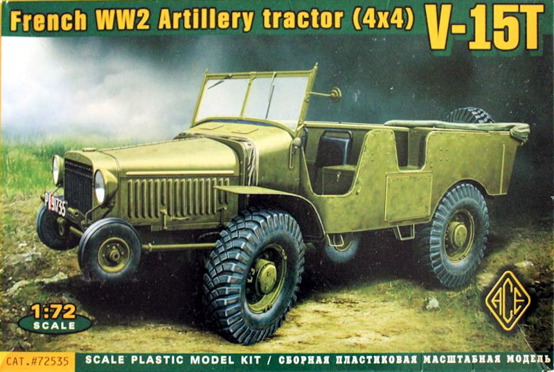 Vorbild: In den 1930er Jahren produzierte Laffly eine ganze Serie an geländegängigen LKW und Traktoren für die französische Armee. Laffly entwarf oft die Fahrzeuge, während andere Firmen, wie z.B. Hotchkiss sie bauten. All diese Fahrzeuge hatten ein Satz kleiner Räder unter der Motorhaube und der Kabine um das Durchfahren von schwerem Gelände zu erleichtern. Der V-15-T war ein leichter 4x4 Artillerie Schlepper. Er wurde häufig eingesetzt, um die 25mm S-AL mle Pak zu ziehen. Die Firma Laffly stellte selbst nur die ersten 100 Fahrzeuge her. Danach wurden die Fahrzeuge bei La Licorne weiter gebaut.