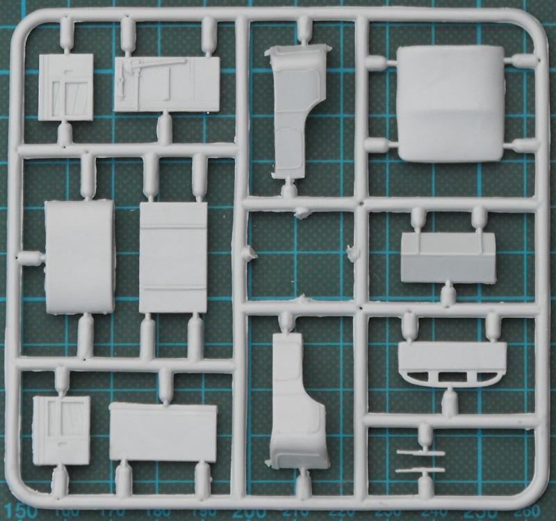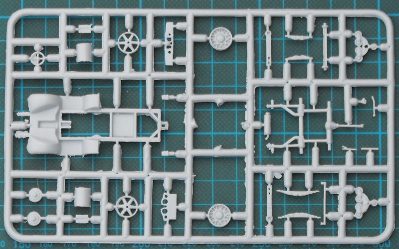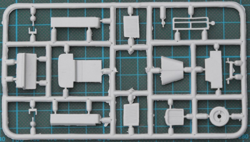 Die Bauteile verlangen ein wenig Nacharbeit und erfahrungsgemäß kommt man ohne Spachtel auch nicht aus. Der Bau beginnt mit dem Kettenlaufwerk. Das gut einsehbare Führerhaus lässt noch einige Details vermissen. Hier sollte man noch ein wenig Kreativ sein. Fenster müssen aus Klarsichtmaterial (liegt nicht bei) selbst geschnitten werden. Es gibt nur eine gedruckte Vorlage.