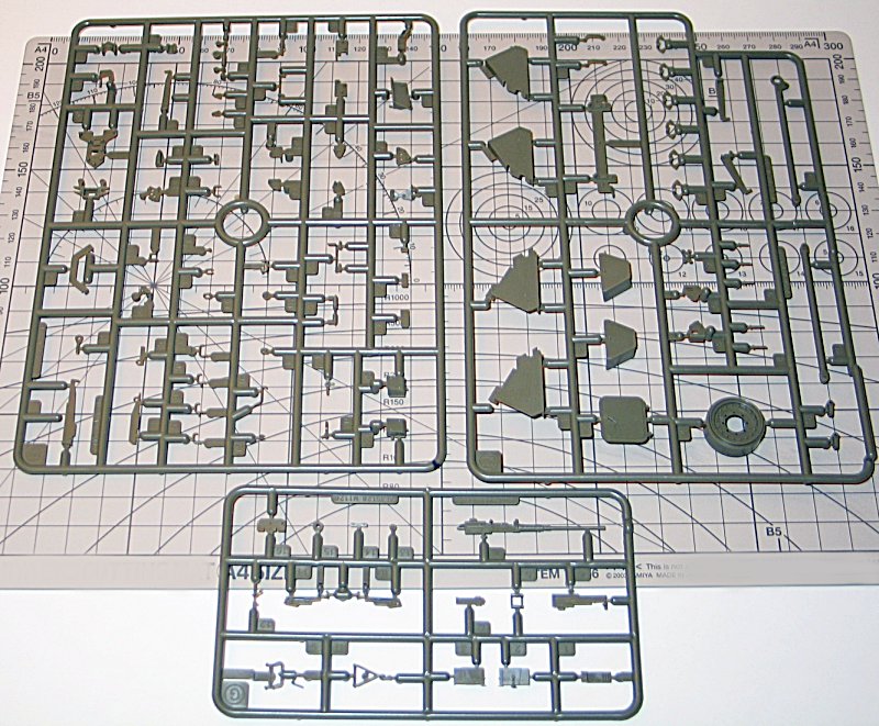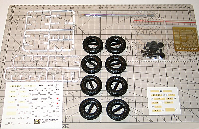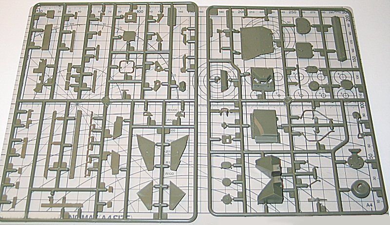 Allein 19 Bauabschnitte sind für den Bau der Turm und Kanonenkonstruktion nötig. Und die Bauanleitung hat nur 42 Bauabschnitte. Das zeigt mit wie viel Detail, der Turm und die Kanone umgesetzt wurden. Jeder einzelne Gussrahmen ist in Klarsichttüten verpackt. Vorbildlich. Feinste Details, Ätzteile werten den Bausatz weiter auf. Die Reifen sind gut nachgebildet, mit der dazu gehörigen Michelin Beschriftung. Der Bauplan lässt trotz der Vielzahl von Bauteilen keine Fragen offen. Wenn es etwas kompliziert wird, wird der Modellbauer durch S/W Fotos vom Original unterstützt.