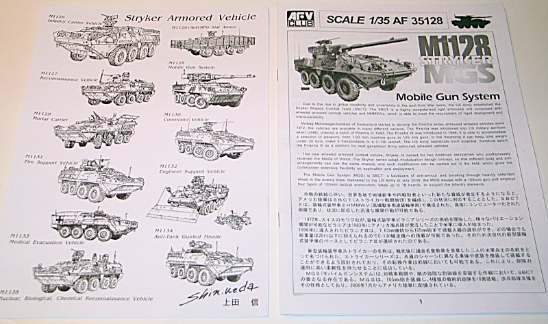 Fazit: Ein hervorragender Bausatz, der Lust auf weitere Strykervarianten macht! AFV steht mit der Firma Trumpeter in Konkurrenz was Stryker Bausätze angeht. Aber die Modelle der Firma AFV, sind schon etwas besser detailliert. Anhänger moderner Gefechtsfahrzeuge sind mit diesem Bausatz bestens bedient. Auch weil es sich um ein besonderes interessantes Fahrzeug handelt.