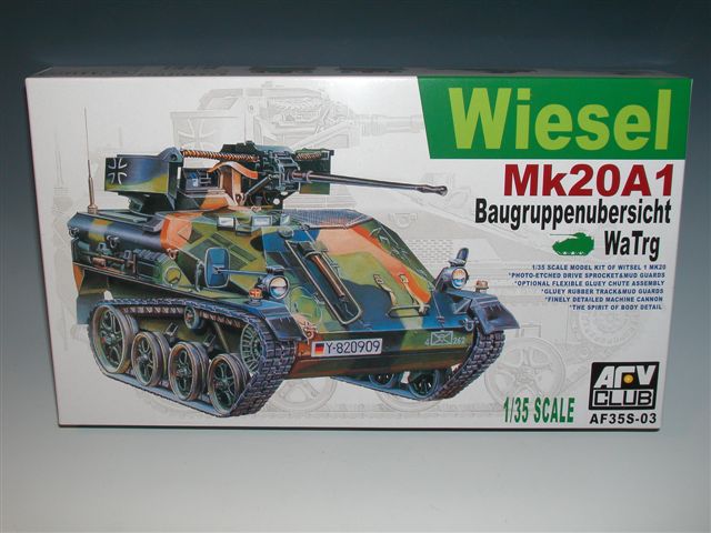 Als aktuelle Wiederauflage bringt AFV CLUB den Waffenträger Wiesel auf den Markt. Da es bis heute keinen anderen Modellbau Hersteller gelang dieses überaus interessante Modell heraus zu bringen, wird es sicherlich den einen oder anderen beim Stöbern in seinem Fachgeschäft in Jubelstürme versetzen. Ich werde mir hier ein umfangreiches Besprechen des Wiesels ersparen, da ein ausführlicher Baubericht in unseren I.P.M.S. Mitteilungen (3-98) vorhanden ist.