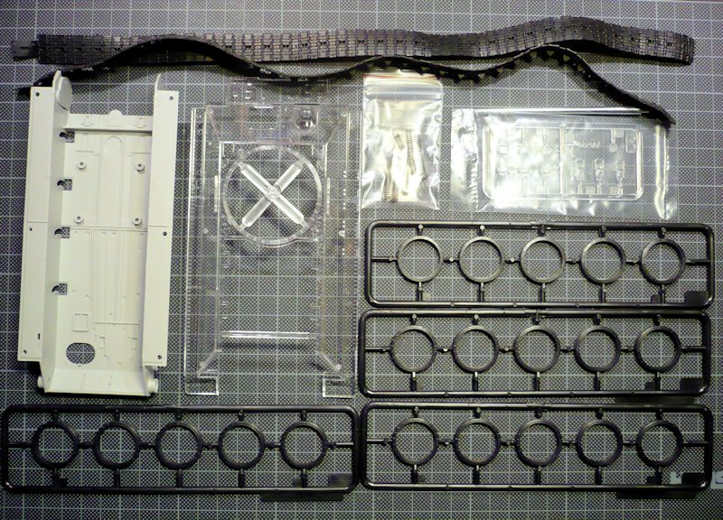 Der Bausatz besteht aus neun sauber gespritzten hellgrauen, vier klaren und zwei schwarzen Gussästen.
