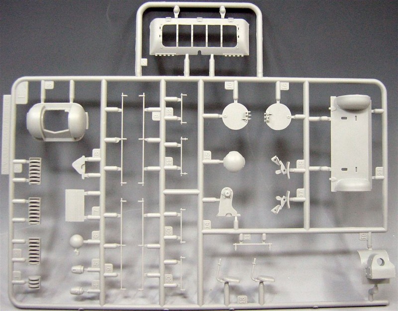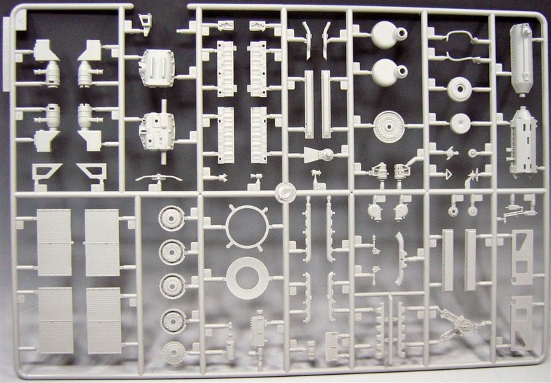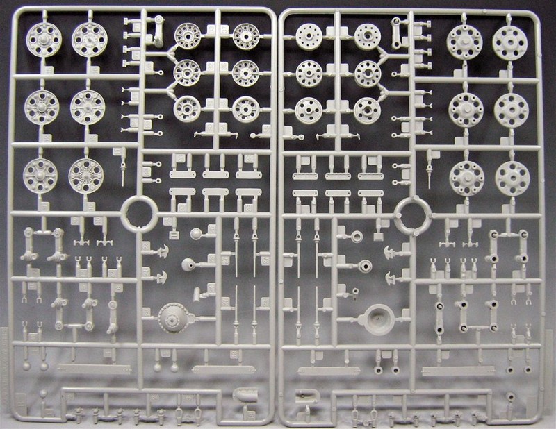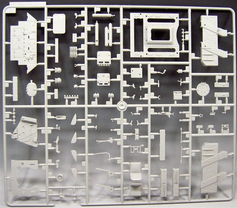 Im Bausatz enthalten sind: Zehn sauber gespritzte Gießäste in grau bzw. transparenten Plastik, eine Panzerober- und Unterwanne, ein in Aluminium gedrehtes Geschützrohr, ein Fotoätzteil für die hintere Motorabdeckung, eine Vinyl Antriebskette, Decals, Schnurmaterial und Federn.