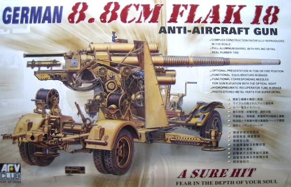 Das lange Warten hat sich gelohnt! AFV Club bringt als erster ein Plastik - Spritzgussmodell der legenderen 8,8cm Flak 18 heraus. Hr. Alessandro Balbo, Vertriebsleiter von Astro Model, war so freundlich und schickte mir noch vor dem offiziellen Verkaufsstart ein Exemplar des neuen AFV Club Modells zu. Schon nach dem Öffnen des Kartons wird man durch die vielen Plastik Bauteile (ca. 370), verteilt auf 7 Spritzgussrahmen und den diversen Metallteilen einschließlich 6 Gummireifen, angenehm überrascht. Das gedrehte Aluminium Geschützrohr, das heute schon zum Standard der neuen Bausätze gehört, beinhaltet selbstverständlich die Rohrzüge im inneren des Rohres. Ferner liegen dem Bausatz noch 3 Metallrohre für die Zylinder bei.