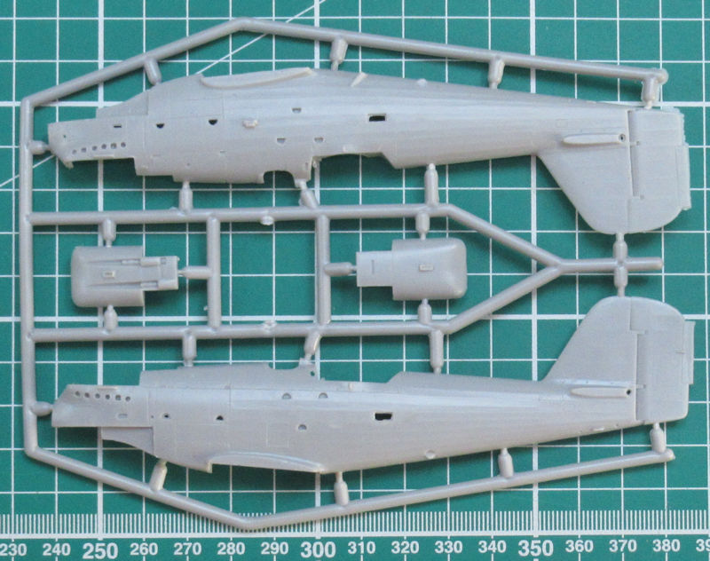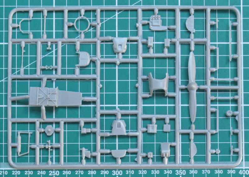 Es handelt sich um einen klassischen Short-Run-Bausatz. So findet man feine versenkte Strukturen und schöne Details. Der Bau beginnt mit dem Cockpit und hier kann alternativ ein Drehkranz montiert werden. Die Rumpfseiten sind von innen schön strukturiert. So ergänzt die Ausstattung das Ganze. Die beiden Instrumentenbretter haben erhabene Strukturen und müssen bemalt werden. Auf jeden Fall sollte man ein paar Sitzgurte ergänzen.