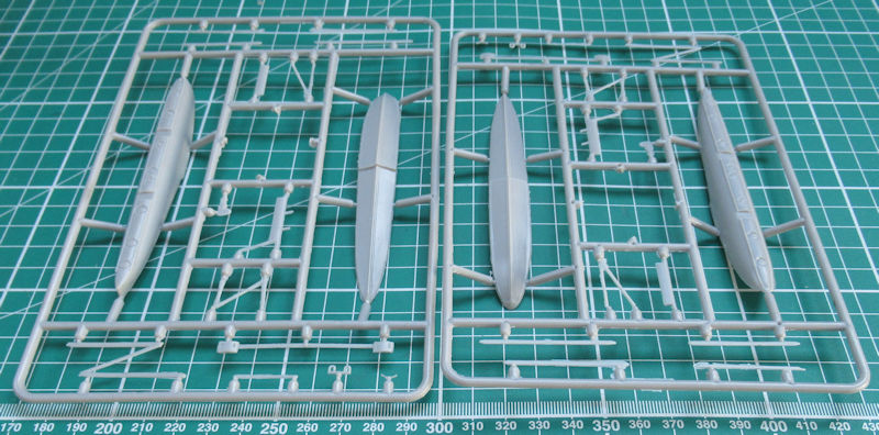 AIM liefert alternativ zwei Motorhauben. So muss man sich bei der Montage dieses Teils für eine Variante entscheiden. Die Tragflächen bestehen aus unterer und oberer Hälfte. Somit gibt es hier keine scharfen Kanten bei den Querrudern. Diese findet man immerhin beim Höhenleitwerk. Die Schwimmer entstehen jeweils aus einer oberen und unteren Hälfte. Damit gibt es dank der intelligenten Aufteilung keine störenden Klebenähte.