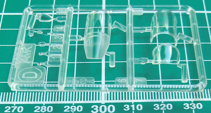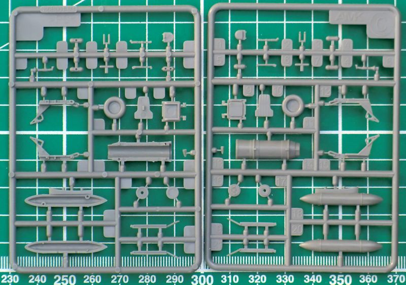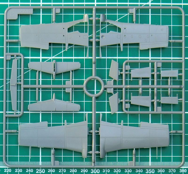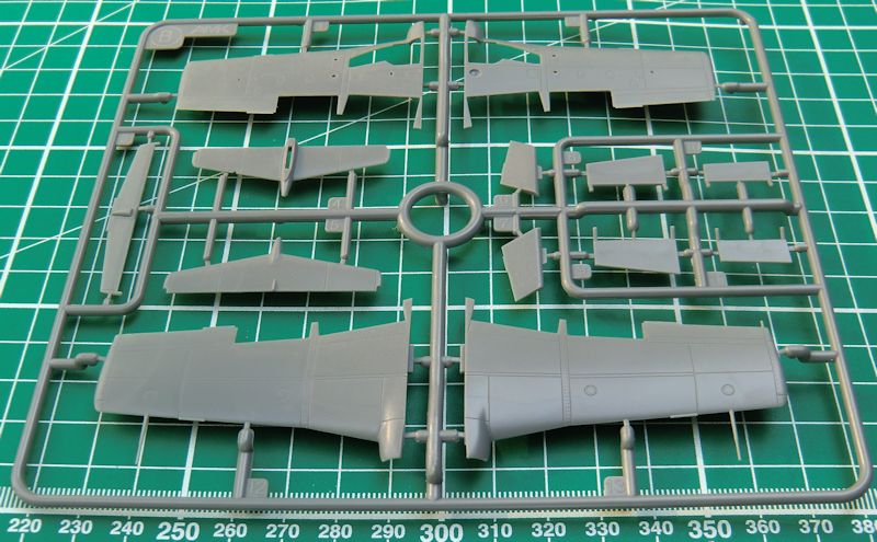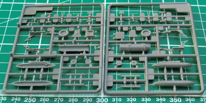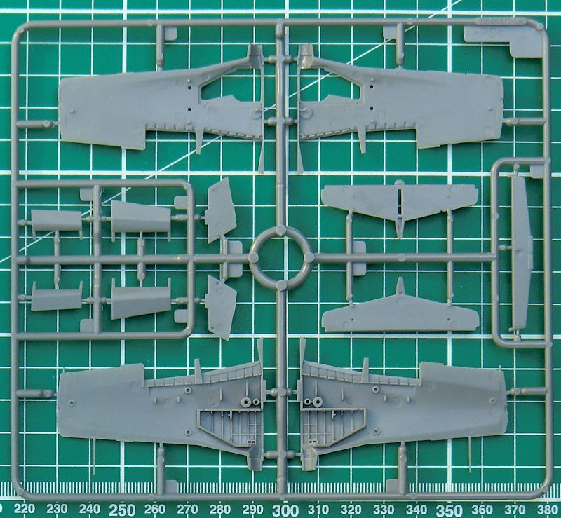 In dem praktischen attraktiven Stülpkarton befinden sich gut verpackt vier hellgraue Spritzlinge mit immerhin 104(!!!) Einzelteilen, ein klarer Spritzling mit acht Teilen, einen Fotoätzteilbogen, ein Decal und die mehrfarbige Bau- und Bemalungsanleitung. Die Abspritzung ist voll auf der Höhe der Zeit. Es gibt feinste versenkte Strukturen und recht schöne Details.