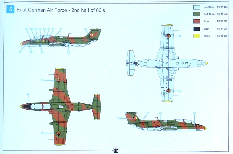 Die Farbhinweise beziehen sich auf Federal Standard. Der Decalbogen ist sehr umfangreich. Leider kann man auch hier die DDR-Hoheitszeichen vergessen, da sie verdruckt oder falsch gedruckt sind. Dafür sind alle anderen Zeichen recht ordentlich.