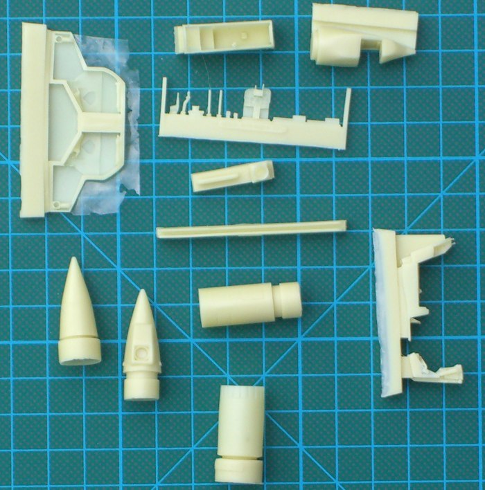 Bausatz: Der vor einigen Jahren bei AML erschienene Bausatz der Mirage IIIC/CJ wurde 2006 noch mal gründlich überarbeitet und erschien nun als Mirage IIICJ/Shahak. Schon beim Öffnen des Kartons ist schnell klar, dass es sich hier um einen recht anspruchsvollen Multimediabausatz handelt. Die Abspritzung der Plastik-Bauteile ist Short-run. So gibt es viel Grat und auch die Materialstärke einiger Bauteile ist erheblich. Einige Kleinteile (insbesondere fürs Cockpit und für den Rumpfbug) sind aus Resin. Die Vacukanzel liegt doppelt bei. Der Schleudersitz ist recht gut gelungen und sollte anhand von Vorbildfotos bemalt werden. Die Bauanleitung zeigt nur eine recht grobe Skizze. Schon in der ersten Bauphase kann der Umbausatz von PJ Production für das ATAR 9C zum Einsatz kommen. Die Teile sind dort wesentlich besser detailliert.