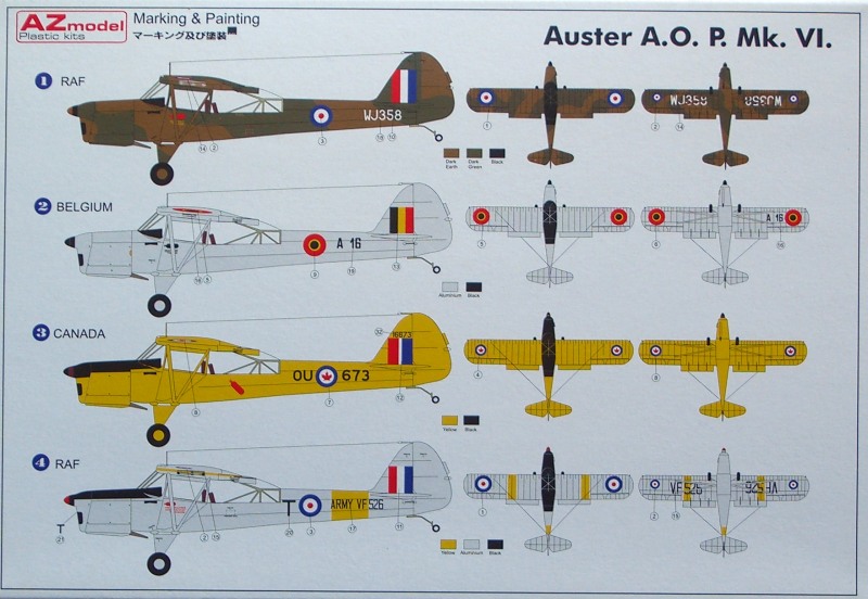 Zur besseren Montage hat AZmodel immerhin einen ordentlichen Vier-Seiten-Riss mit abgedruckt. Die Bemalungsanleitungen sind auf dem Bausatzcover gut gemacht. Leider hat sich Peter Muzikant die Historie der einzelnen Vorbilder erspart. Der Decalbogen ist ohne Versatz auf hellblauem Trägerpapier gedruckt. Für die belgischen Kennzeichen gibt es einen kleinen Korrekturbogen.