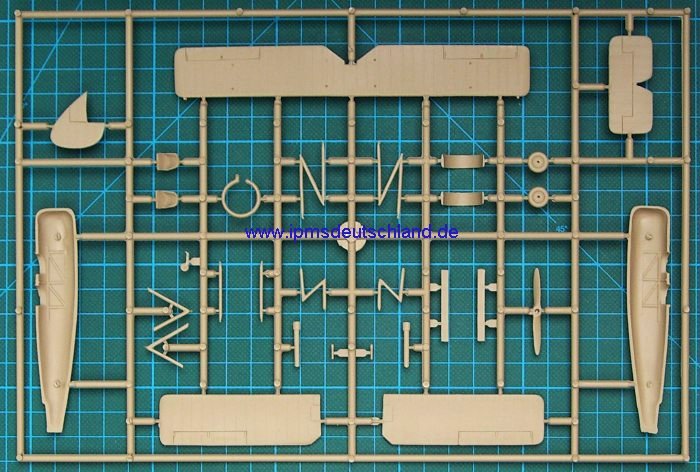 Der Karton ist auch hier etwas größer als gewohnt und enthält trotzdem nur einen beigen Spritzling, der allerdings gut aussieht. Auf den Tragflächen wirkt die Struktur der Bespannung etwas zu grob (es gab in den 30er Jahren auch schon Spannlack). Dafür ist der Rumpf wie aus einer anderen Form. Innen gibt es auch noch ein paar Strukturen. Das Cockpit selbst wird aus Kunststoff- und Fotoätzteilen (Instrumentenbretter und Gurte sind bedruckt) aufgebaut. Der Motor besteht wieder aus Resinmaterial und kann sehr überzeugen. Die Windschutzscheiben werden aus einem Fotofilm erstellt. Eine Scheibe gibt es als Reserve. Ein paar Streben müssen aus Rundmaterial selbst hergestellt werden. Für die Verspannung gibt es einen schönen Plan in der Bauanleitung.