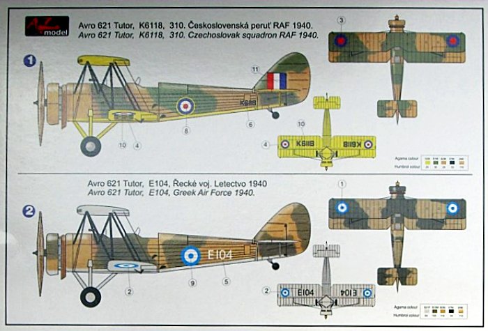 Vorbild: Avro bot Ende 1929 die Avro 621 Tutor als Trainer für die RAF an. Im Juni 1930 wurde die Tutor der Öffentlichkeit vorgestellt. Die RAF wurde zum größten Auftraggeber und es wurden 394 Exemplare von den 975 gebauten Tutor abgenommen. Fast alle Serienmaschinen waren mit dem Amstrong Siddeley Lynx IVC-Triebwerk mit 243 PS ausgerüstet. Damit erreichte die Tutor eine Höchstgeschwindigkeit von 196 km/h. Ende der 30er Jahre hatte die Tutor bei der RAF ausgedient und durch die Miles Magister abgelöst. Die Tutor wurde sehr erfolgreich exportiert. So übernahm Griechenland 30 Exemplare, Polen baute sie als P.W.S. 18 in Lizenz, Südafrika baute 57 Exemplare und China erhielt auch fünf Flugzeuge. Es gab auch eine Schwimmerversion Sea Tutor, die schon 1938 wieder ausgemustert wurde.