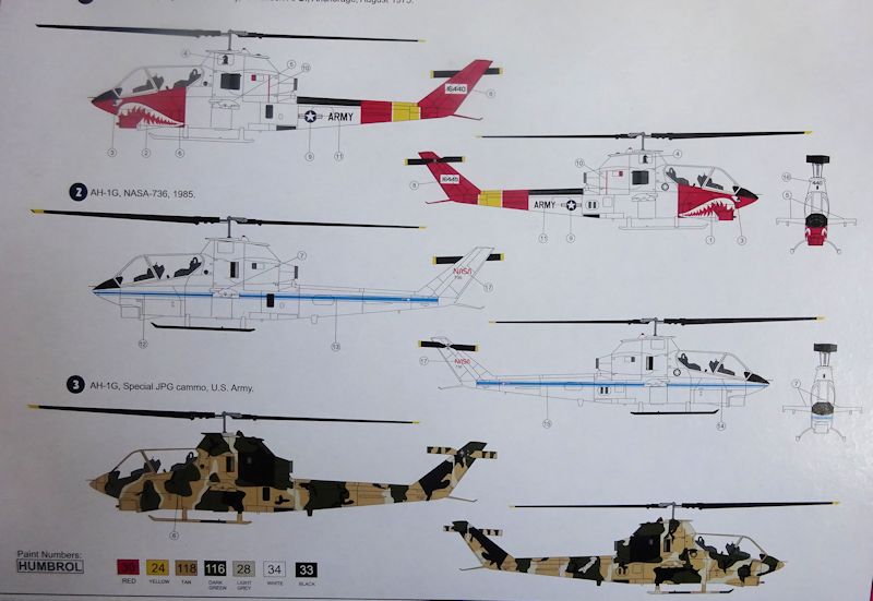 Die Bemalungsschemata befinden sich auf der Schachtelrückseite, die Farbangaben sind in HUMBROL.