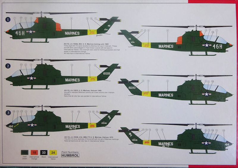 Die Bemalungsschemata befinden sich auf der Schachtelrückseite, die Farbangaben sind in HUMBROL.