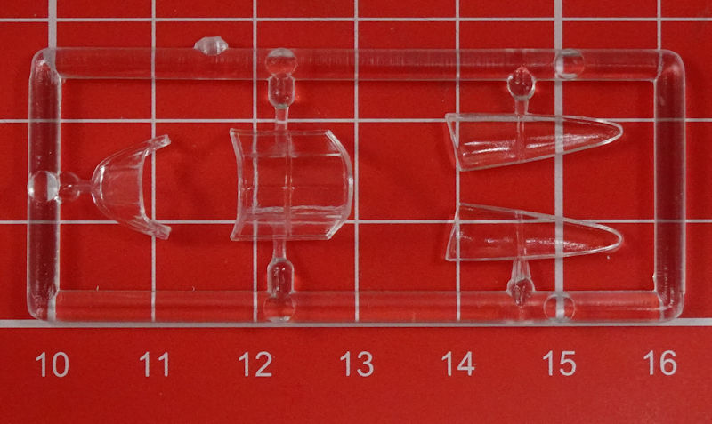 Die Klarsichtteile sind wirklich klar und ausreichend dünn. Es gibt vier Teile und die beiden hinteren Seitenscheiben müssen separat eingeklebt werden. Dafür ist das Frontteil einzeln und somit kann die Schiebehaube auch geöffnet angeklebt werden.