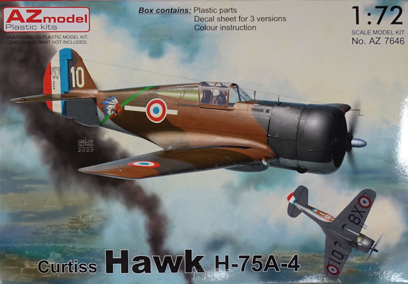 Bausatz: Mein erster Kontakt mit der Curtiss P-36/Hawk 75A im Maßstab 1/72 war der Ex-Heller-Bausatz unter dem Smer-Label. Dann kamen um die 2000er Jahre Kits von Azur und AML in unterschiedlichen Varianten von der A-1 bis zur A-4. Ab 2017 folgten bei AZmodel die Hawk 75A-1 bis A-3 und aktuell gibt es die A-4/5/7-Varianten. Hier liefert AZ die französische A-4 mit interessanten Bemalungsoptionen.