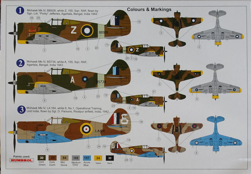 Die Klarsichtteile sind wirklich klar und ausreichend dünn. Der Decalbogen ist tadellos gedruckt. Die Farbangaben sind für das Humbrol-System.