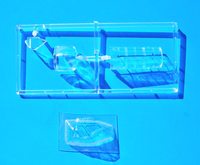 Petr Muzikant hat nun die Grand Phoenix Formen erstanden und hat gleich einen ganzen Schub Libellen und Dämonen in sein Programm aufgenommen. Meinen Bausatz erstand ich von Lubosch Wimmer in Nürnberg und er ist leider auf dem Rückweg etwas gequetscht worden, weshalb das Vakuteil leider nicht verwendbar ist. In "freudiger Erwartung" hatte ich auch versucht Roy Sutherland zu kontaktieren, der für die Firefly unter dem Cooper Details Label Zubehör- bzw. Korrektursets auf den Markt gebracht hat … leider aber ohne eine Rückantwort zu bekommen. Ebenso fehlt mir leider ein Vergleichsexemplar, so dass ich leider nicht sagen kann, ob einige der Problemzonen (Spinner, Propellerblätter, Flügelbewaffnung) überarbeitet wurden. Nun, es wird auch so gehen.