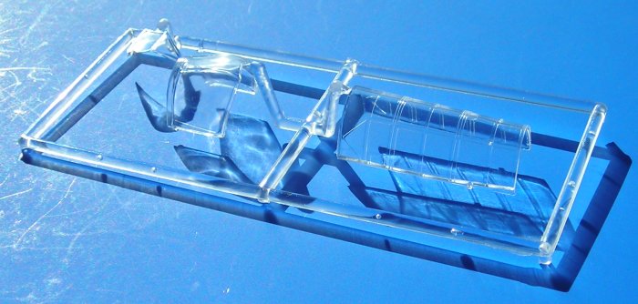 Die Plastikteile sind mit wenig Grat abgespritzt. Es gibt einige seltsame Stellen, an denen die Gravur anscheinend beschädigt war und durch erhabene (in der Form also versenkte) Gravuren repariert wurden … sicher bin ich mir da aber nicht. Ansonsten sind diese in Ordnung, wenn auch etwas breit.