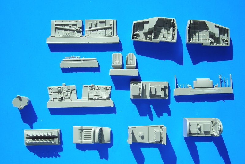 Die Resinteile sehen "neu" aus, allerdings fehlt mir wie schon erwähnt der Vergleich (Flügelbewaffnung), denn auch damals hat Aires für den Gießkunststoffanteil gesorgt. Insgesamt sind jedenfalls eine Menge Resinteile vorhanden, die den geforderten Preis rechtfertigen.