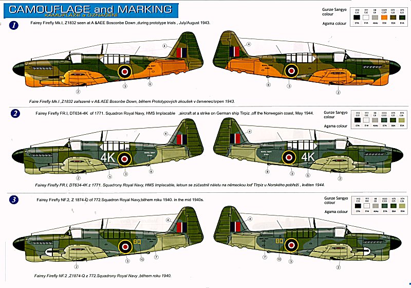 Vorbild Die Genehmigung für den Bau der Firefly erteilte die britische Admiralität im Sommer 1939, der Erstflug des Prototypen fand am 22. Dezember 1941 statt. Drei weitere Prototypen folgten bis September 1942, die Auslieferung der ersten Serienmaschine erfolgte im März 1943. Erste Einsätze von Bord des Flugzeugträgers HMS Indefatigable erfolgten dann im Juli 1944, als Flugzeuge der 1770. Staffel das deutsche Schlachtschiff Tirpitz angriffen. Erste größere Einsätze sah das Muster dann im Januar 1945 im Pazifik, wo britische Verbände Angriffe auf japanische Raffinerien auf Sumatra flogen. Firefly's waren im Juli 1945 auch die ersten britischen Trägerflugzeuge über dem japanischen Festland