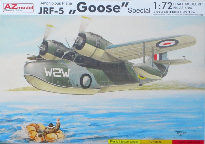 Vorbild: Die Grumman Goose (G-21) hatte ihren Erstflug am 29. Mai 1937. Es folgten mehrere zivile und militärische Maschinen. Nach Beginn des WK II erfolgte der Bau dieses kleinen zweimotorigen Amphibienflugzeugs in größeren Stückzahlen für diverse militärische Auftraggeber. Insgesamt wurden 345 Goose in verschiedenen Versionen gebaut. Noch heute entstehen neue Exemplare bei Antilles Seaplanes mit Propellerturbinen.