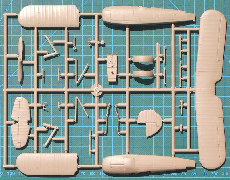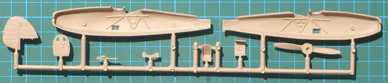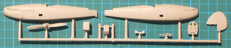 Der Bausatz präsentiert sich in der üblichen Ausstattung der AZmodel-Kits. Es gibt gut gemachte Spritzgussteile, denen man die Shortrun-Qualität nicht ansieht, einen Bogen Fotoätzteile, einen Fotofilm für Instrumente und Windschutzscheiben, ein paar Räder aus Resin. Das Ganze wird durch eine gut gemachte Bauanleitung sowie der farbigen Bemalungsanleitung auf der Kartonrückseite ergänzt.