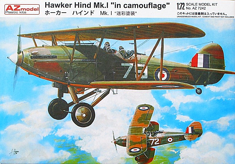 Bausatz: Nachdem die Hawker Hart bei AZmodel erschien kam auch die Hoffnung für einen zeitgemäßen Bausatz der Hawker Hind auf. Nun AZmodel hat diesen Wusch inzwischen realisiert. Es wurden ein paar Hind-Teile neuentwickelt und damit gibt es ein paar Hart-Teile für die Restekiste.