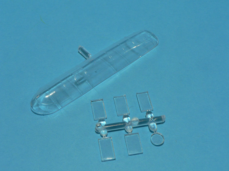 Die Klarteile aus Plastik sehen eigentlich ganz gut aus, aber leider ist die Kanzel ganz geschlossen dargestellt. Wer eine andere Konfiguration mag, muss in die Trickkiste greifen, was nicht leicht sein wird. Besonders viel wird im Inneren des Rumpfes aber nicht zu sehen sein. Insgesamt sind für den Innenraum nur 14 Teile vorgesehen (Bewaffnung inbegriffen). Also wer ein "seriöses" Model bauen will, der muss hier ein wenig mehr tun oder warten bis jemand (Eduard oder sogar AZ Model selbst) einen Fotoätzteil Satz dafür entwickelt und auf den Markt bringt.