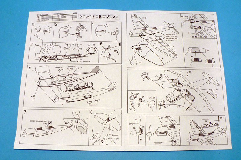 Die Bauanweisung ist sehr spartanisch. Es handelt sich lediglich um ein A4 Blatt "Kopierpapier", das in der Mitte gefaltet ist. Da der Bausatz aus recht wenigen Teilen besteht (76), sollte es aber reichen. Eine gute Idee war es, die Farbanweisungen in Farbe auf der Rückseite der Schachel zu drucken.