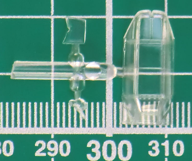 Bei der Motorabdeckung hat der Formenbau und/oder der Kontrolleur geschlafen. Hier gibt es zwei unterschiedlich lange MG-Laufnachbildungen. Diese müssen entfernt und dann durch zwei Stück Rundmaterial ersetzt werden. Die Cockpitverglasung besteht leider nur aus einem Stück.