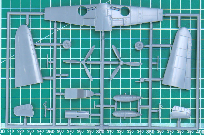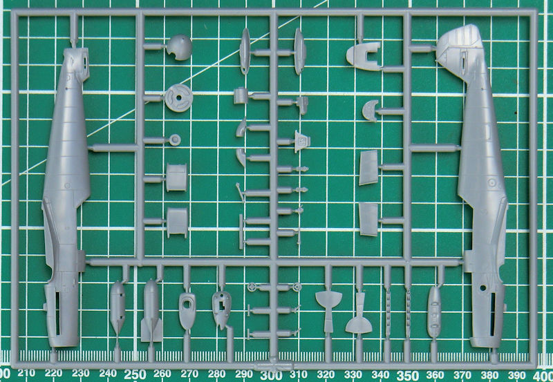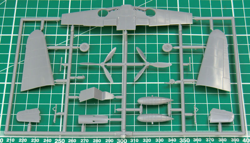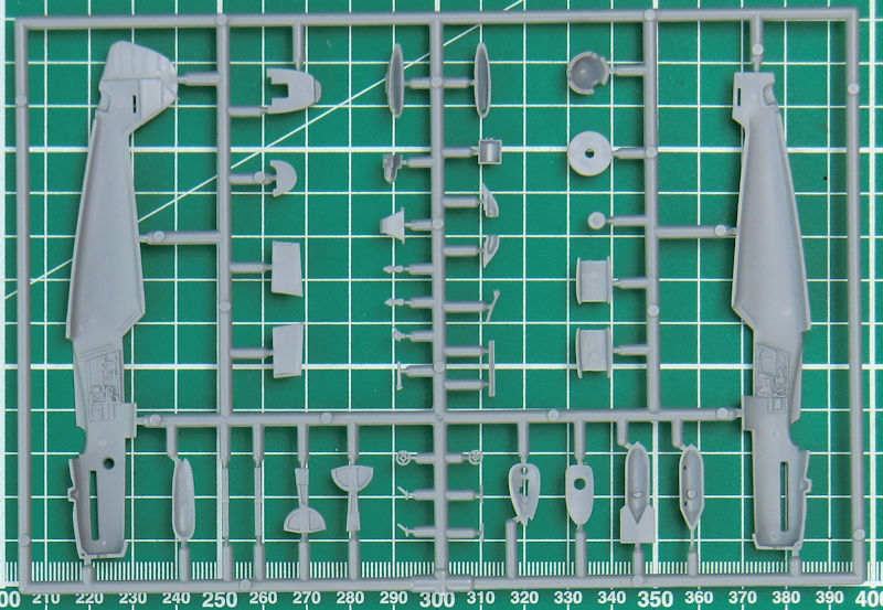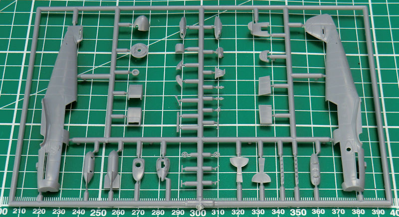 Die einteilige Luftschraube ist auch jeweils für die F-2/4 sowie die F-4/Z vorhanden. Das Luftleitblech über den linken Auspuffstutzen wird einzeln aufgeklebt. Die Krümmer selbst sollen von innen vor dem Zusammenfügen der Rumpfhälften eingeklebt werden. Diese Lösung ist nicht optimal. Die Fahrwerksschächte sind in den Tragflächen schön detailliert. Beim Zusammenbau dieser Flächen ist genau auf den Winkel zu achten. Die Bauanleitung zeigt wie es aussehen muss.