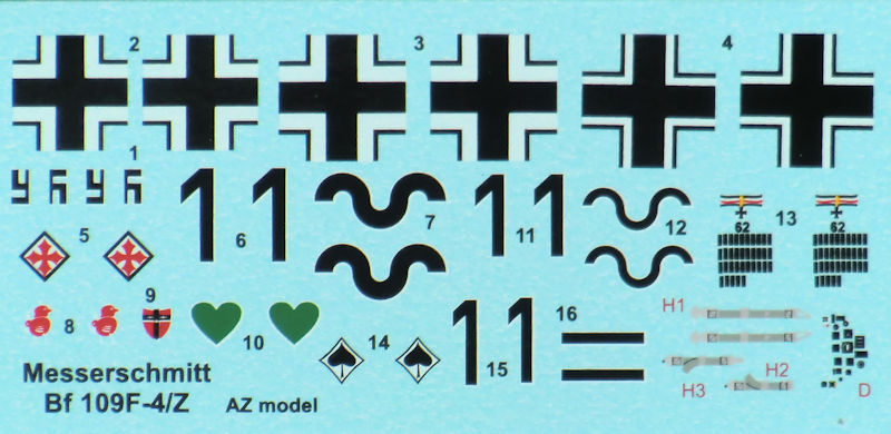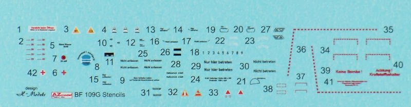 Die beiden Decalbögen wurden tadellos auf hellblauem Trägerpapier gedruckt. AZmodel benennt Humbrol bei den Farben als Referenz.