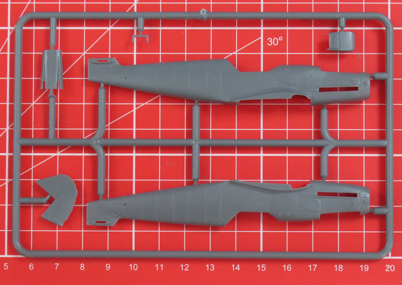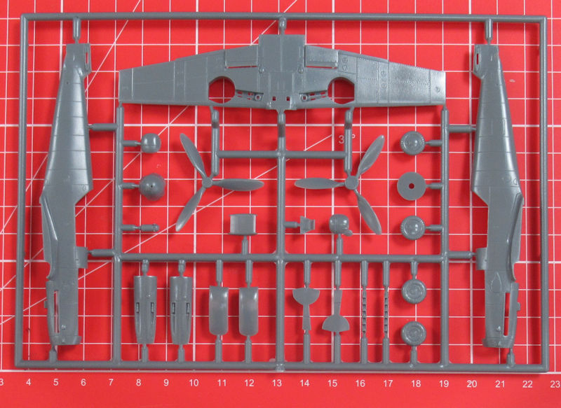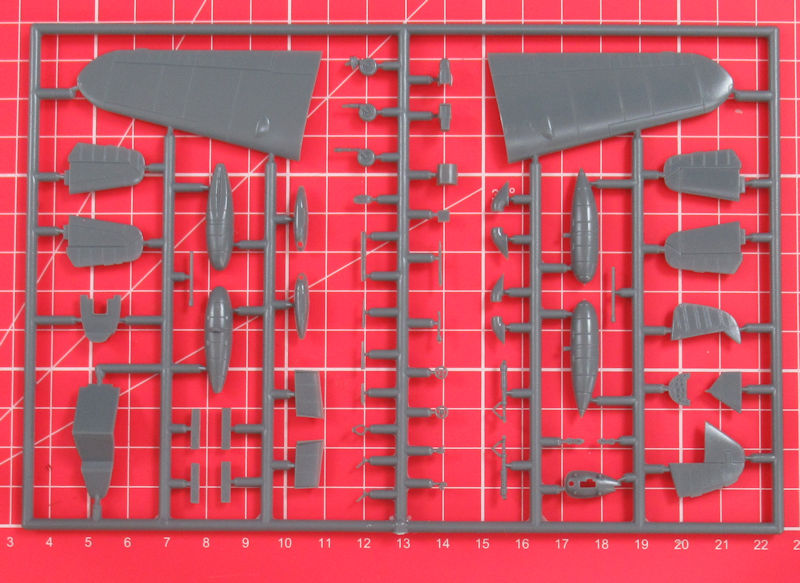Das Hauptfahrwerk sieht ansprechend aus und auch die Klappen sind von innen detailliert. Eine Luftschraube landet in die Restekiste und die zweite ist für die G-10 zu verwenden. Selbst die großen Beulen für die Tragflächenseite sind alternativ vorhanden. Die Seitenleitwerke sind auch zweimal vorhanden. Beide Auspuffleisten werden von innen in den Rumpf eingeklebt und bei der Hochzeit von Rumpf und Tragfläche muss man auf die korrekte V-Stellung der letzteren achten.