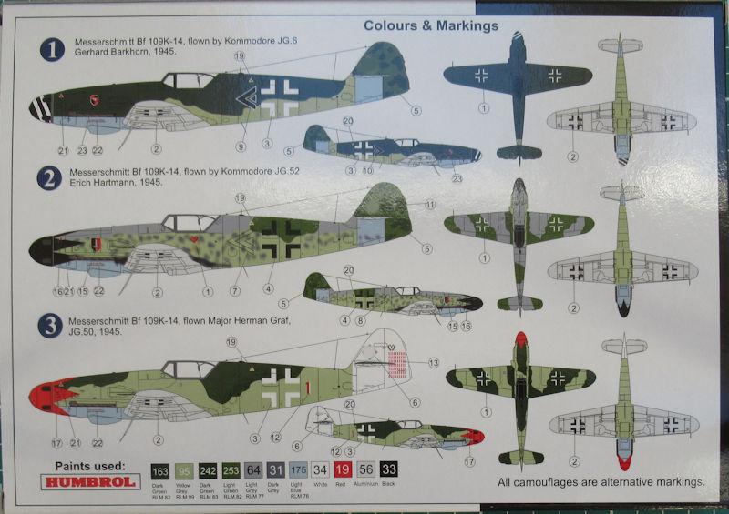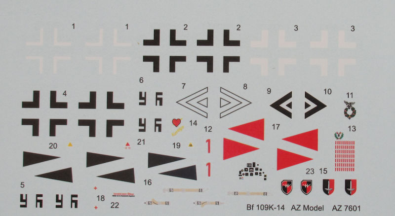 Der kleine Decalbogen ist tadellos gedruckt und enthält die nötigen Wartunshinweise. AZmodel benennt Humbrol bei den Farben als Referenz. Gleichfalls werden noch die RLM-Töne zusätzlich mit angegeben.