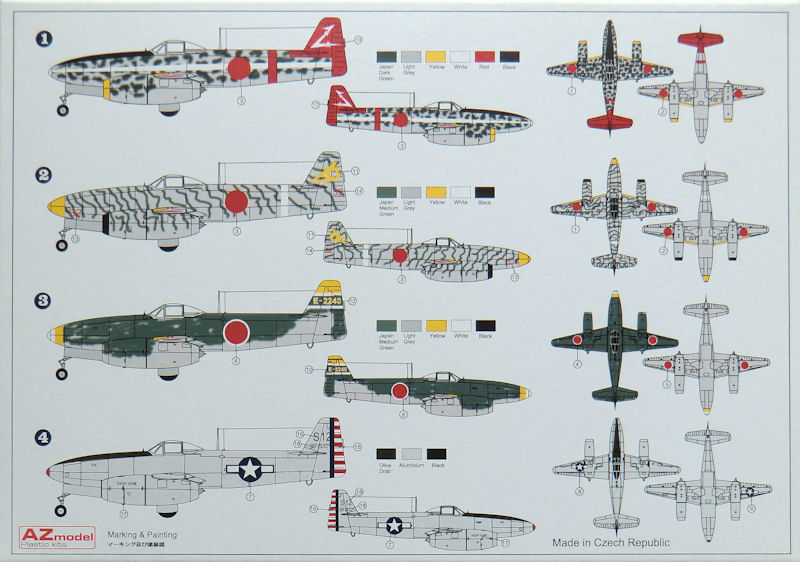 Bausatz: Die Nakajima J9N Kikka gab es in 1/72 zuvor bei Merlin und auch MPM. Nun hat AZmodel aus Tschechien einen eigenen Short-Run-Kit für den sehr fortgeschrittenen Modellbauer in verschiedenen Verpackungen auf den Markt gebracht. In der attraktiven aber unpraktischen Schüttbox befinden sich gut verpackt zwei hellgraue Spritzlinge mit 42 Teilen, ein Decalbogen, eine Klarsichtkanzel und die typische Azmodel-Bauanleitung.