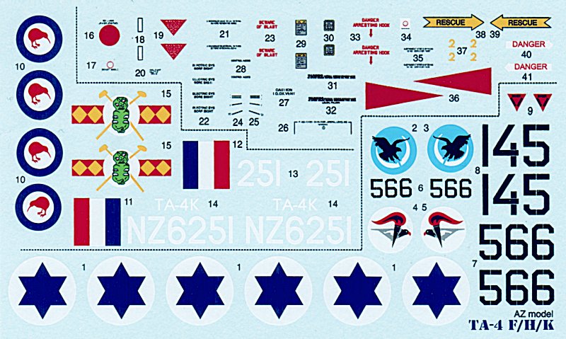 Soweit ich weiß, schaut der Wappenvogel auf den Hoheitszeichen immer nach vorn - auf der Grafik schaut er auf der rechten Seite nach hinten. Außerdem sollen sich beide Flügelhoheitszeichen auf dem linken Flügel befinden. Es muss sich aber von oben links und auch von unten gesehen links (dann also auf dem rechten Flügel) befinden. Die 4 Kiwis aus dem Decalbogen sind also richtig orientiert, man muss nur beim Abringen der Abziehbilder etwas aufpassen. Viele Fotos in dieser Bemalung habe ich nicht gefunden und nur ein schwarz-weißes der NZ-6251.